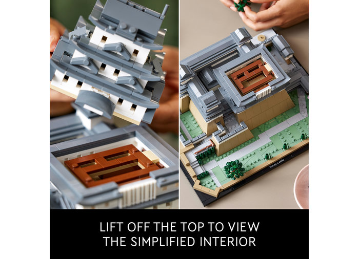 Sărbătoreşte longevitatea şi frumuseţea maiestuoasă a uneia dintre cele mai venerate clădiri din Japonia cu modelul de etalat LEGO® Architecture Castelul Himeji (21060). Lasă-te transportat în oraşul Himeji fără a-ţi părăsi propriul cămin, recreând în stil LEGO detalii autentice precum turnuleţele, aleile şi zidurile asimetrice ale castelului. Ridică acoperişul clădirii principale pentru a vedea o replică simplificată a structurii interioare.