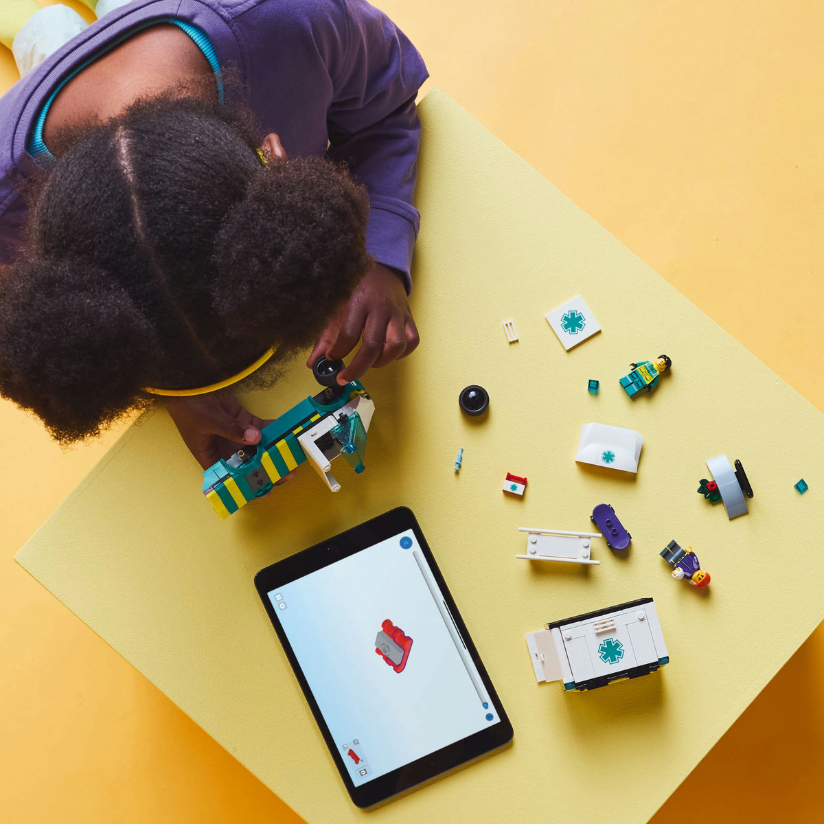 În aplicaţie, copiii pot explora şi salva seturi, îşi pot monitoriza progresul construcţiei şi pot apropia şi roti modelele pentru a le vedea din toate unghiurile pe măsură ce le construiesc.