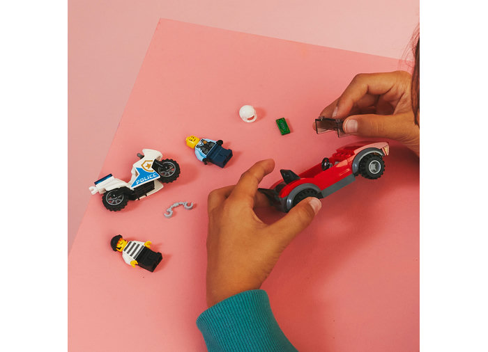 Mobilizează imaginația copiilor cu acest set de joc plin de acțiune. LEGO® City Polițist pe motocicletă în urmărirea unei mașini (60392) conține o motocicletă de poliție pentru urmărire și o mașină sport pentru evadarea infractorului. Adaugă minifigurinele agent de poliție și infractor, o bancnotă de jucărie și un strop de imaginație pentru ore întregi de distracție cu capturare de infractor.