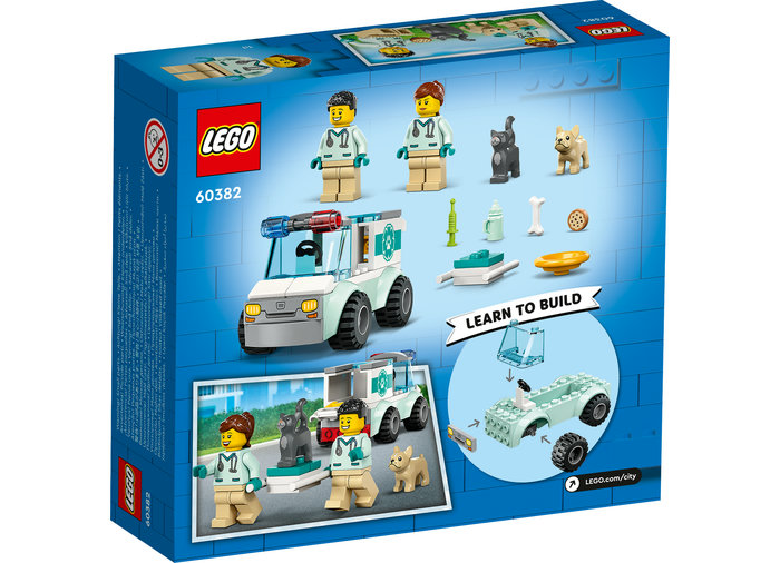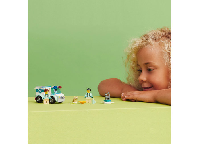 Veterinarii în devenire și iubitorii de animale de 4+ ani se vor bucura să aibă acest set de construcție LEGO® City Ambulanță veterinară (60382), care conține un vehicul de salvare cu o targă detașabilă, 2 minifigurine veterinari, figurine câine și pisică și accesorii amuzante pentru multe ore de joacă fantezistă cu îngrijire de animale.