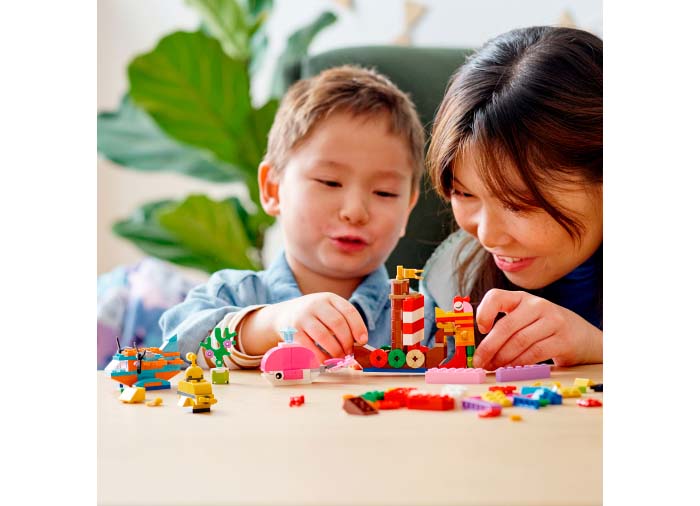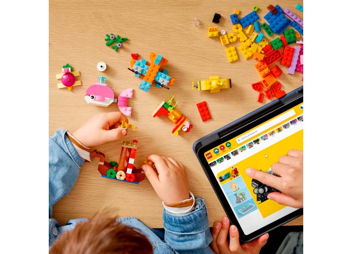 • Set LEGO® Classic cu 6 idei de jucării construibile cu tematică oceanică pentru joacă creativă