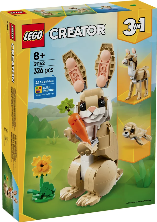 Oferă ocazia copiilor care îndrăgesc animalele să se bucure de aventuri cu setul de construcţie LEGO® Creator 3 în 1 Iepuraş drăgălaş (31162).