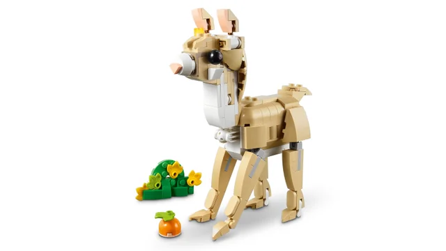 Fetele şi băieţii pot construi 3 animale LEGO diferite cu aceleaşi cărămizi: o figurină Iepuraş drăgălaş articulat, cu o floarea-soarelui şi un morcov, o lamă articulată cu un petic de iarbă verde şi o jumătate de morcov şi o figurină focă cu un strat de gheaţă şi un peşte.