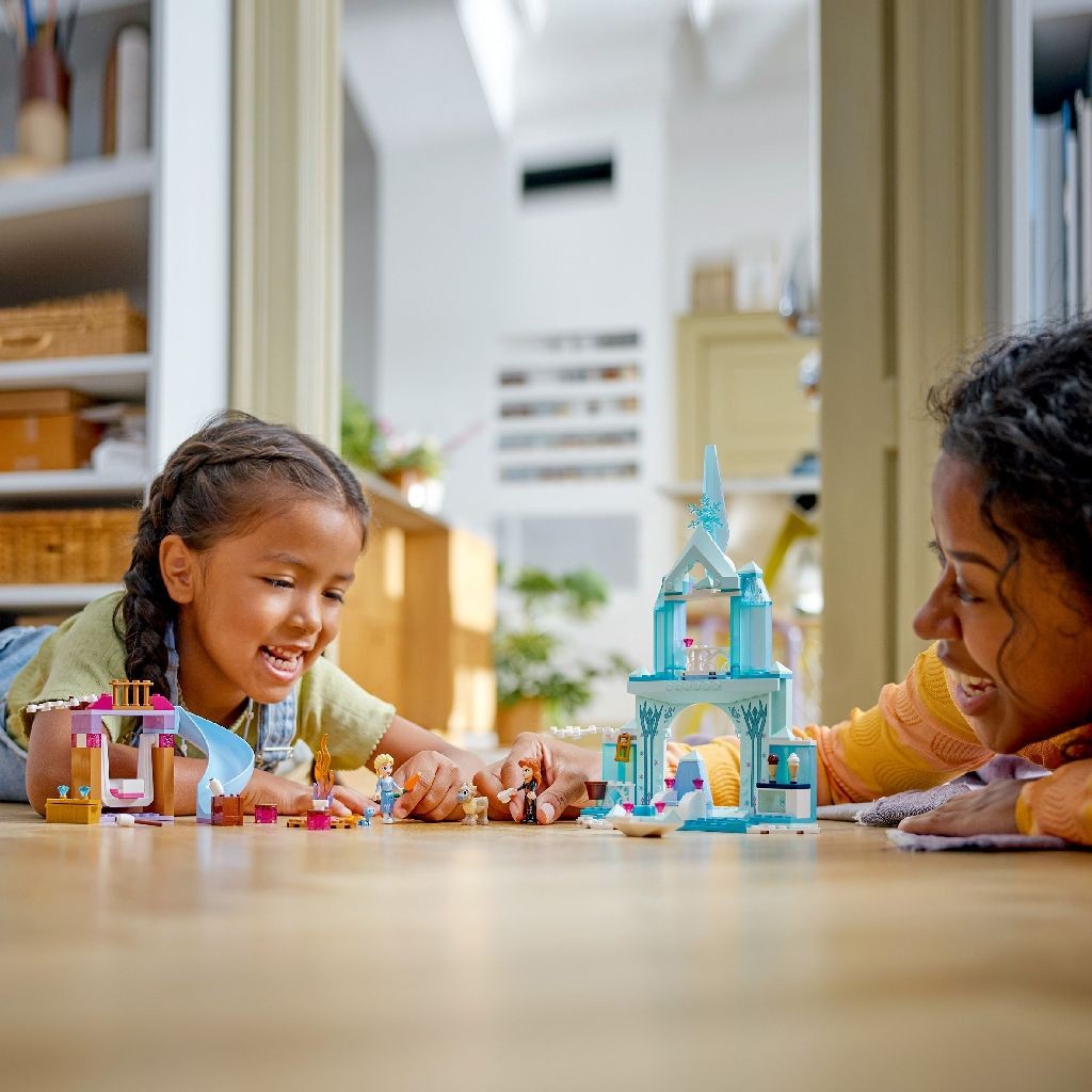 Copiii in varsta de 4 ani si mai mari sunt asteptati la palat pentru o joaca nelimitata in timp ce invata sa construiasca cu setul LEGO® ǀ Disney Castelul Elsei din Regatul de Gheata (43238). inauntru se afla un castel cu o bucatarie, un semineu, o zona cu leagan si tobogan, un foc de tabara, o canoe mica de gheata si o multime de elemente de poveste.