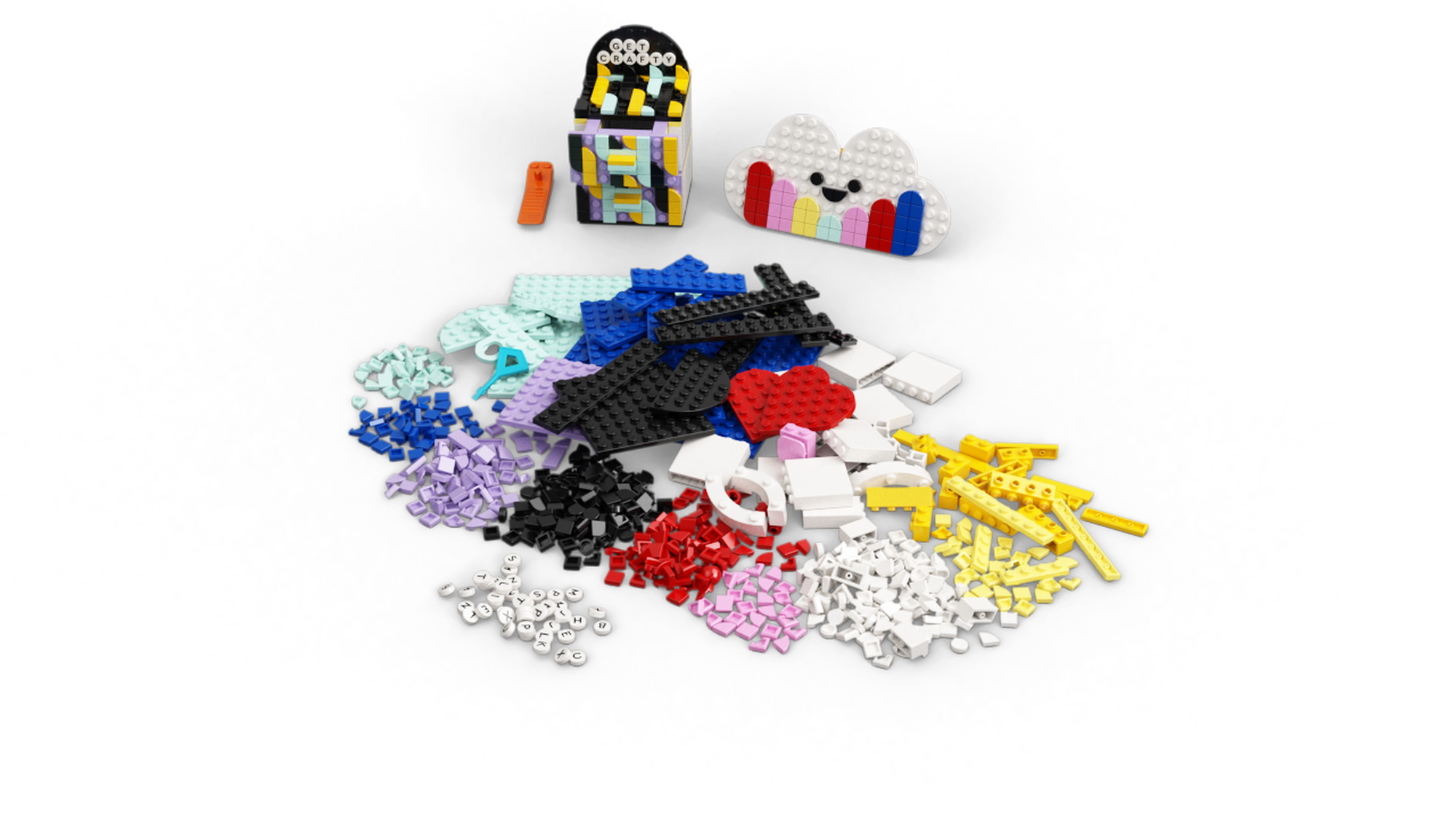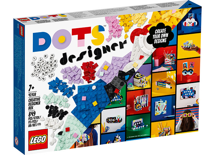 Acest set final LEGO DOTS Creative Designer Box (41938) este un kit perfect pentru fanii meșteșugurilor sau copiii creativi, ajutându-i să își dezvolte abilitățile de artizanat și design. Acest set include o revistă plină de inspirație creativă, o mulțime de instrucțiuni disponibile online la LEGO.com/buildinginstructions pentru realizarea diferitelor articole de decorare a camerei, plus ghiduri de asamblare pentru 5 articole DOTS personalizabile din revistă - un organizator de birou, sertare pe 2 niveluri, panou suspendat pentru mesaje, ramă foto și o tavă mică. Copiii pot folosi piesele colorate cu litere pe ele pentru a crea modele și mesaje sau își pot exprima creativitatea cu o geantă Extra DOTS - Series 5 (41932) sau o cutie Lots of DOTS (41935) (vândută separat). Bucuria acestei cutii de designer este șansa pe care le oferă copiilor să-și facă propriile obiecte de decor pentru cameră cu inspirație, sfaturi și trucuri incluse, ajutându-i să-și arate desenele unice sau să le împărtășească prietenilor.