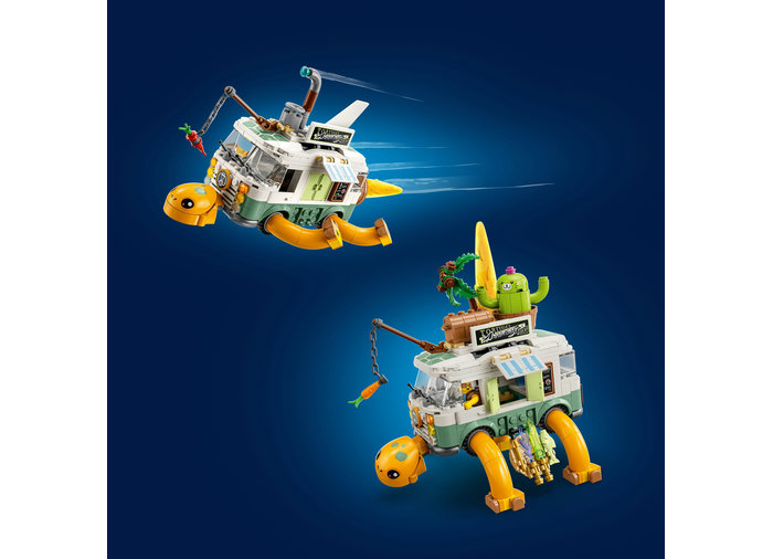 În forma sa de bază, furgoneta-ţestoasă a dnei Castillo are roţi mobile ţi un acoperiţ detaţabil. Copiii pot petrece multe ore personalizând-o în 2 moduri, folosind instrucţiunile de construcţie bazate pe poveste. În modul petrecere, furgoneta-ţestoasă poate fi accesorizată cu un copac miţcător, un cactus rotitor ţi un cufăr cu comori care se deschide. În modul submarin zburător, furgoneta-ţestoasă poate fi accesorizată cu o rachetă ţi un periscop mobil. Acest al doilea mod include ţi o versiune zburătoare de cactus-pisică, care poate călători alături de submarin. Astfel creativitatea copiilor este încurajată, iar timpul în care copiii se distrează cu fiecare set se dublează.