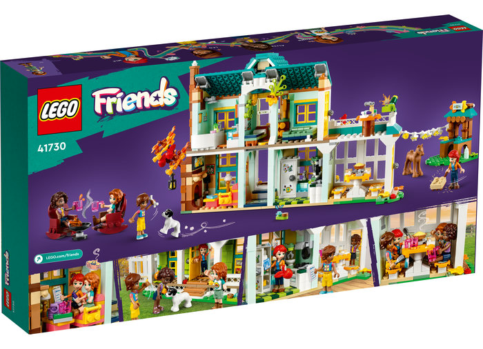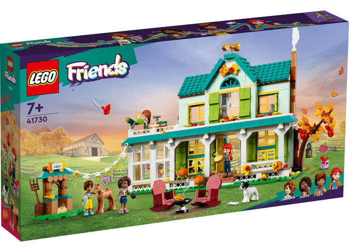 Descoperă o casă cu mulţi prieteni pentru copiii de 7+ ani prin acest set LEGO® Friends Casa lui Autumn (41730). Copiii vor adora s-o cunoască pe amabila Autumn. Aceasta i-a invitat pe prietenii Leo şi Aliya şi a planificat activităţi pentru toată lumea. Fanii gătitului îl pot ajuta pe Leo să culeagă mere şi să coacă o plăcintă în bucătărie. Între timp, micii iubitori de animale i se pot alătura Aliyei ca să-l îngrijească pe noul mânz. Casa are multe camere de explorat, incluzând o bucătărie, osufragerie primitoare, o zonă de dining, o baie şi dormitorul inspirat de natură al lui Autumn. şi la exterior spaţiul e generos, cuprinzând un balcon cu un telescop, o agendă şi un binoclu, unde prietenii pot ieşi ca să observe păsări.