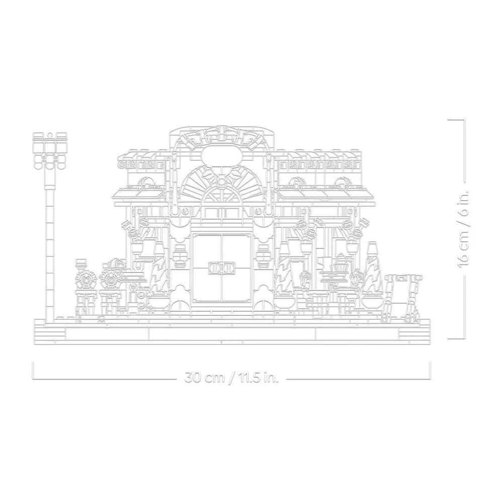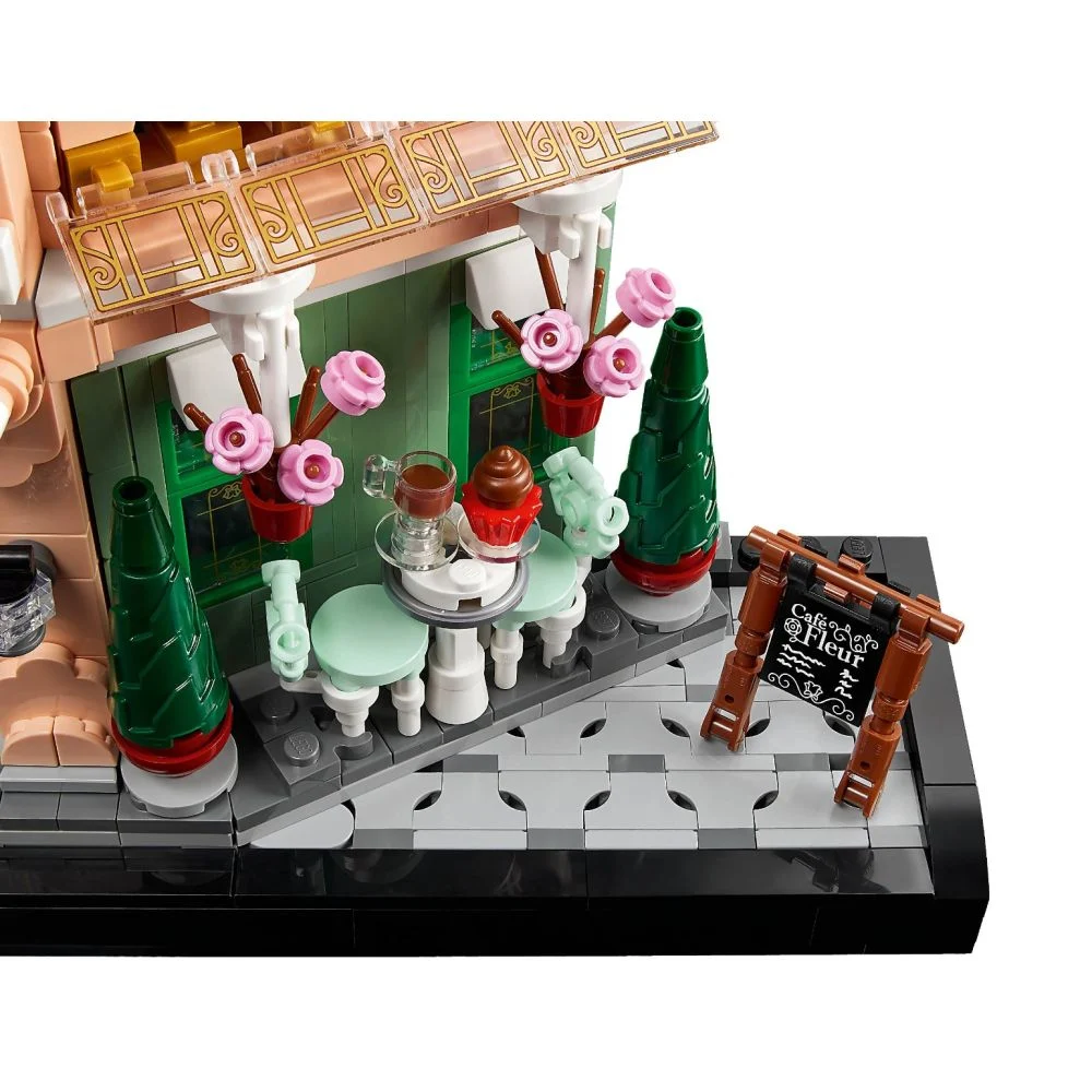 Un trotuar din caramizi cu un felinar clasic creeaza decorul pentru Café Fleur, cu fatada sa pitoreasca, scaunele ornamentate, ghivecele cu flori suspendate si usile duble care se deschid pentru a dezvalui un crampei din interiorul primitor, cu tapet regal si mobilier din lemn inchis la culoare. Plin cu detalii si accesorii elaborate, precum croisante, cani, un ziar si o casa de marcat, acest model surprinde esenta unui bistro frantuzesc clasic, iar adancimea mica si spatele plat il fac perfect pentru a fi etalat pe un raft.