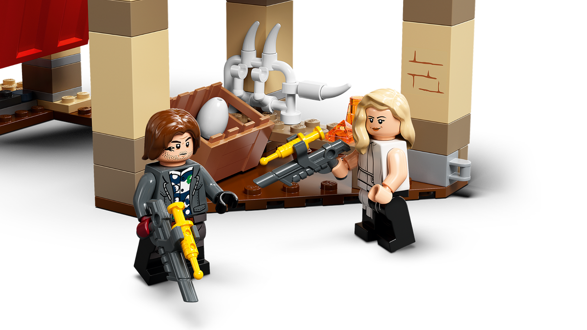 Există 4 minifigurine: Owen Grady, Claire Dearing, Rainn Delacourt and Soyona Santos, plus 2 pistoale tranchilizante pentru a inspira poveștile creative. Sunt incluse instrucțiuni pas cu pas, astfel încât chiar și debutanții LEGO® pot construi cu încredere, iar setul se combină perfect cu Dinozaur Atrociraptor: Urmărirea cu motocicleta (76945) pentru mai multă acțiune.