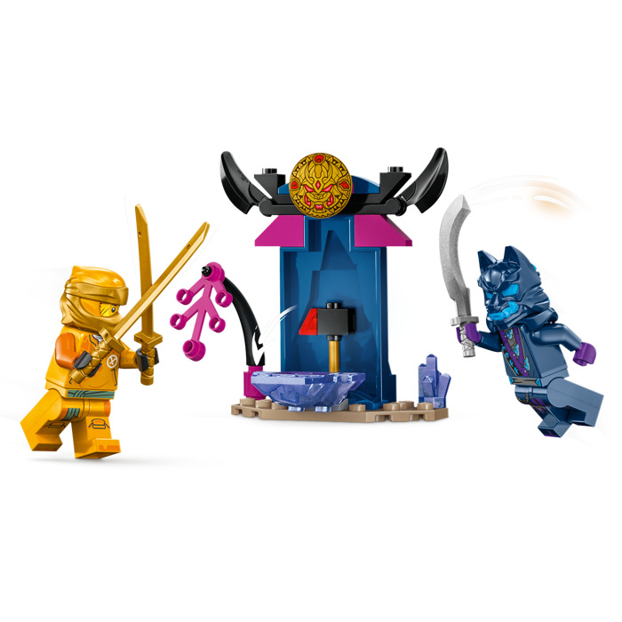 Acest set LEGO NINJAGO vine cu o minifigurină Arin NINJAGO cu un accesoriu de jucărie cu sabie katana și un Războinic cu mască de lup cu un accesoriu pentru sabie. Arin se potrivește în figura mecanică articulabilă, care mânuiește o sabie mare și o lamă rotativă, în timp ce Războinicul cu masca lupului poate zbura într-un planor care are aripi articulabile, un împușcător de discuri și 2 sulițe. Există, de asemenea, o peșteră de cristal construită din cărămidă, cu un ciocan magic în interior și un suport pentru arme cu 2 accesorii de sabie katana aurie. Această jucărie ninja pentru copii a fost concepută pentru a oferi o experiență distractivă copiilor care descoperă bucuria de a construi cu cărămizi LEGO.