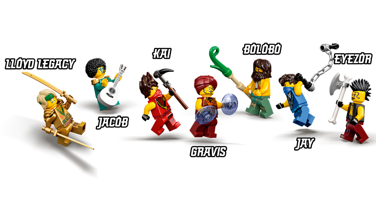 Cu 7 minifigurine: ninja Kai, Jay și Lloyd Legacy, maeștrii elementelor Bolobo, Jacob și Gravis și ticălosul Eyezor, oferă copiilor opțiuni nesfârșite dea pune în scenă lupte și exerciții de antrenament. Nou din ianuarie 2021, Lloyd Legacy este o figurină aurie specială de colecție, pentru a sărbători 10 ani de seturi de construcție NINJAGO.