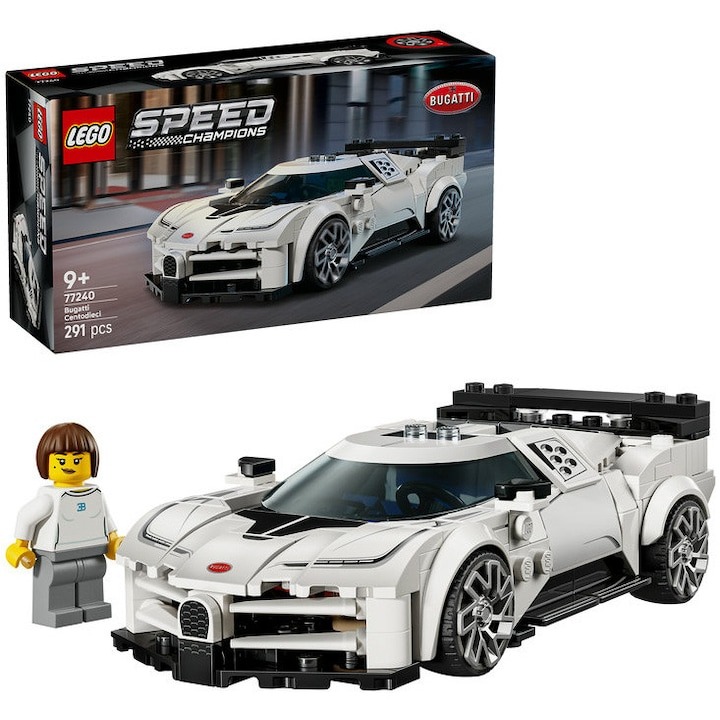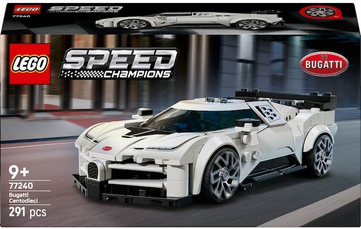 Copiii de 9 ani și mai mari pot colecționa, asambla, folosi la joacă și etala modelul LEGO Speed Champions Hipermașina sport Bugatti Centodieci (77240). Concepută pentru a aduce un omagiu legendarului model Bugatti EB 110, această jucărie impresionantă pentru băieți și fete conține multe detalii faimoase de design ale modelului din viața reală.