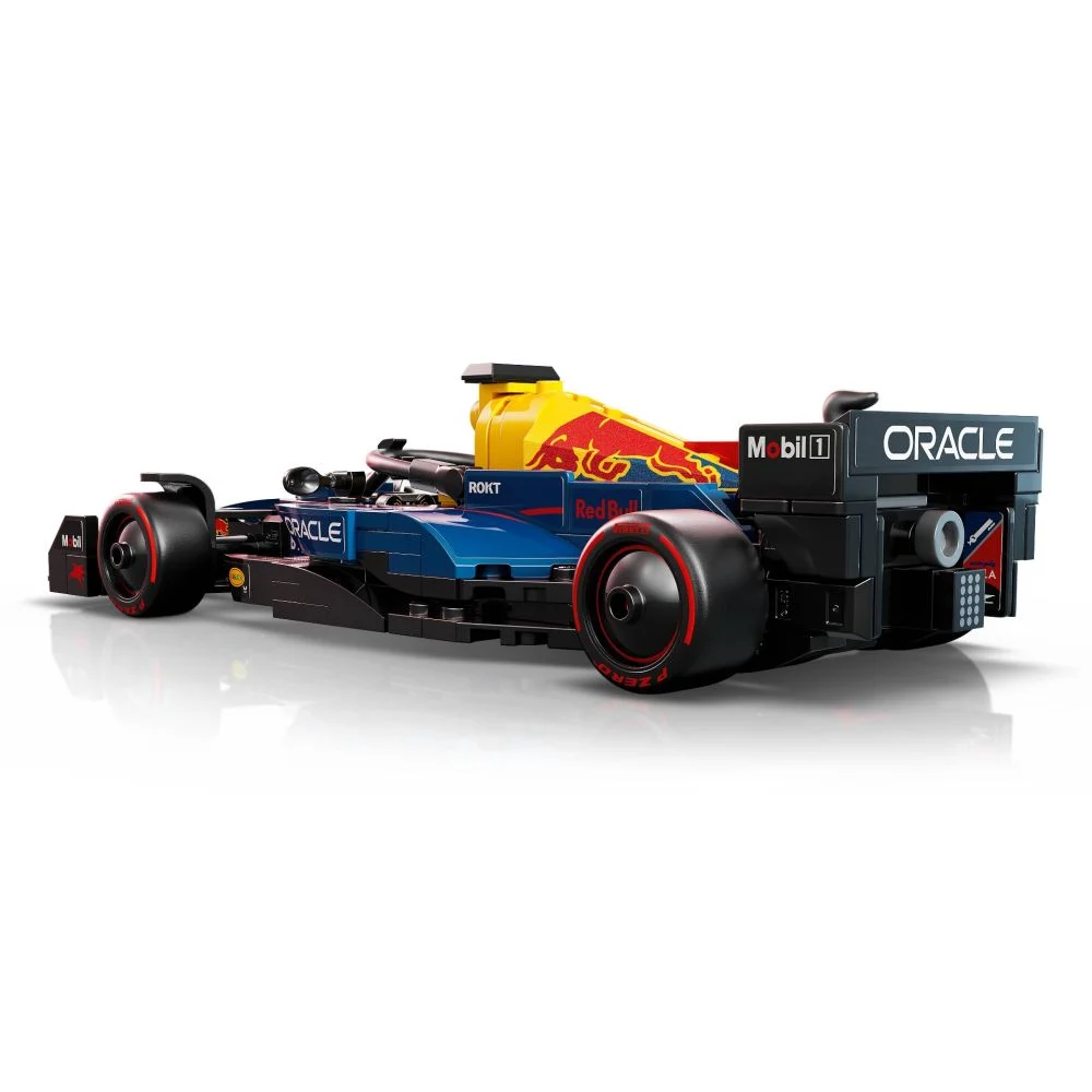 Exploreaza incredibilele dotari ale modelului F1, intre care un cockpit care se deschide prin ridicarea barei de protectie Halo, o aripa spate, suspensia cu brat triunghiular, stickere ale sponsorilor si anvelope spate mai late, imprimate cu numele „Pirelli”. Setul auto include si o minifigurina pilot F1 purtand o tinuta Red Bull si o casca, pe care o poti plasa in interiorul cockpitului. Odata finalizat, modelul de masina F1 arata grozav ca piesa de etalare.