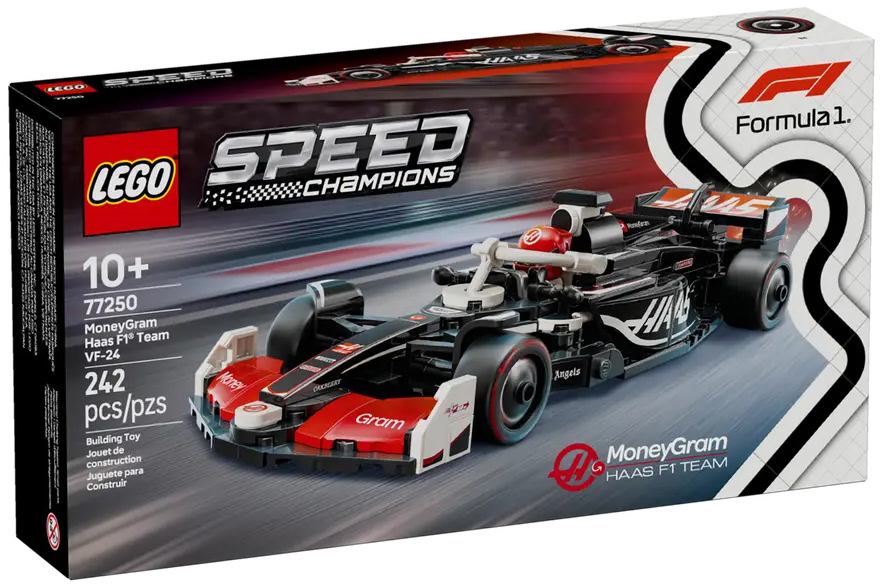 LEGO® Speed Champions Mașina de curse MoneyGram Haas F1® Team VF-24 (77250) oferă ocazia băieților și fetelor de 10 ani și mai mari să trăiască emoțiile unor curse de Formula 1®. Colecționarii de mașini copii și adulți pot construi, etala și imagina curse cu un model de mașină de curse F1 care include detalii de design ale versiunii reale care a concurat în sezonul 2024 de Formula 1.