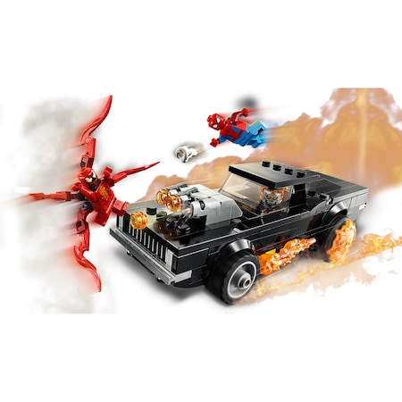 Micii super-eroi vor avea parte de actiune si aventuri incandescente non-stop cand adolescentul Spider-Man lansator de panza si super raufacatorul Carnage se intalnesc cu Calaretul fantoma cel infernal si masina sa cu turbocompresor, cu lansator cu 3 piroane si invaluita de flacari. Acest set de joc cu distractie din plin va oferi copiilor emotii si amuzament nesfarsit in timp ce construiesc, interpreteaza si expun scene cu palpitantul trio. Pentru mai multa distractie creativa, aplicatia LEGO Building Instructions ce se poate descarca include Instructions PLUS digitale, care permite copiilor sa faca zoom, sa roteasca si sa-si vizualizeze setul de joc pe masura ce construiesc.