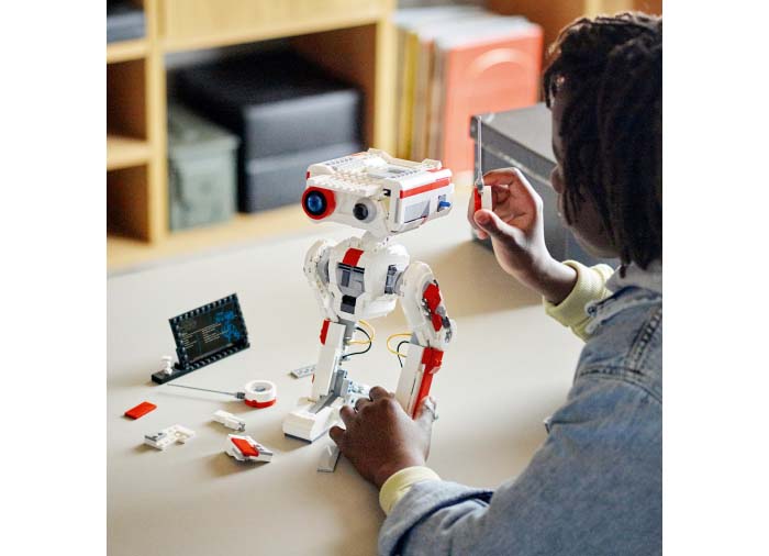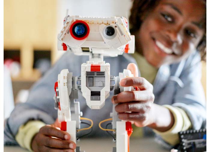 • Conceput pentru etalare – O placardă cu informații și o figurină LEGO® BD-1 care poate fi atașată placardei completează exponatul