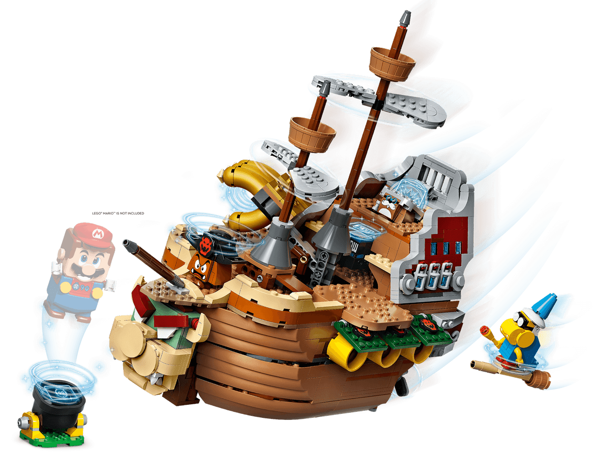 Copiii pot construi emblematica Nava zburatoare a lui Bowser pentru a o expune si pentru a-si amplifica universul LEGO Super Mario cu acest Set de extindere (71391). Nava poate fi aranjata in „modul de zbor” sau desfasurata in „modul de cursa”, iar jucatorii trebuie sa depaseasca provocari, cum ar fi Mana Mecha a lui Bowser si un Bloc POW, pentru a scoate o Cheie impietrita din ascunzatoarea sa. (Nota: Setul de baza 71360 sau 71387 este necesar pentru joc.)