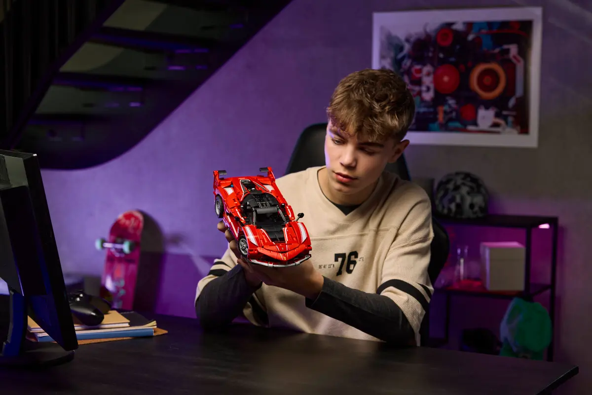• Culori emblematice – Disponibil în nuanța inconfundabilă de roșu a brandului Ferrari, acest set cu model de construcție este o piesă de etalare atrăgătoare, care va arăta grozav în dormitorul oricărui pasionat de supermașini