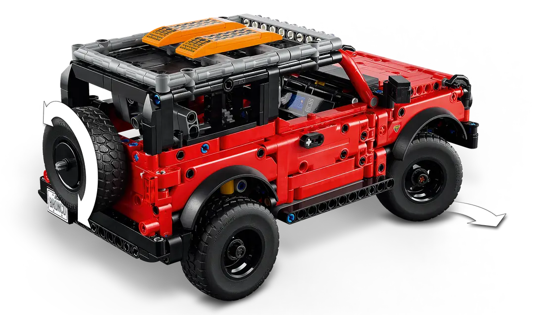 - Model de mașină Ford Bronco® – Inspiră fetele și băieții de 9 ani și mai mari să-și creeze propriile povești off-road cu jucăria de construcție LEGO® Technic SUV Ford Bronco