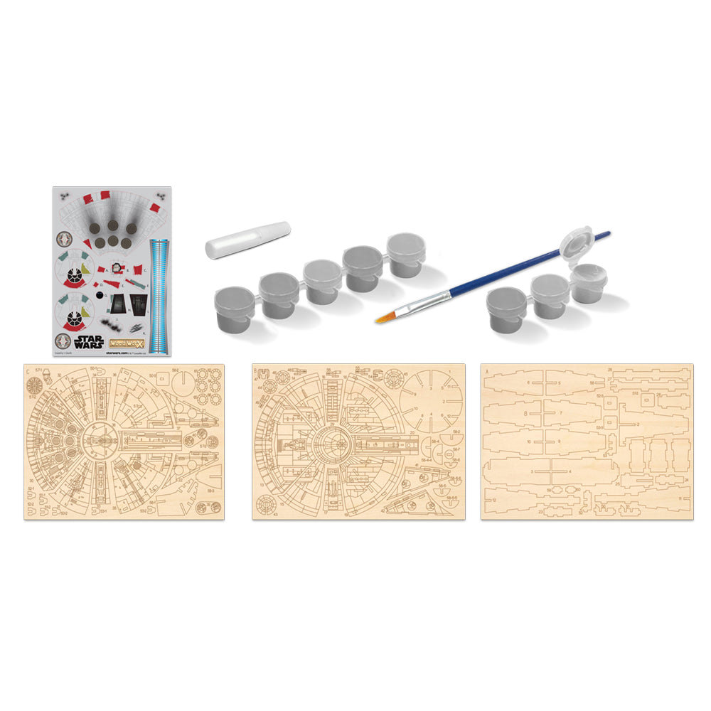 Wood WorX - Star Wars - Millennium Falcon este setul de constructie DIY din, o detaliata recreare a celebrei nave „Millennium Falcon” din filmul „Star Wars: O noua speranta”, ideal pentru fanii din lumea Star Wars.