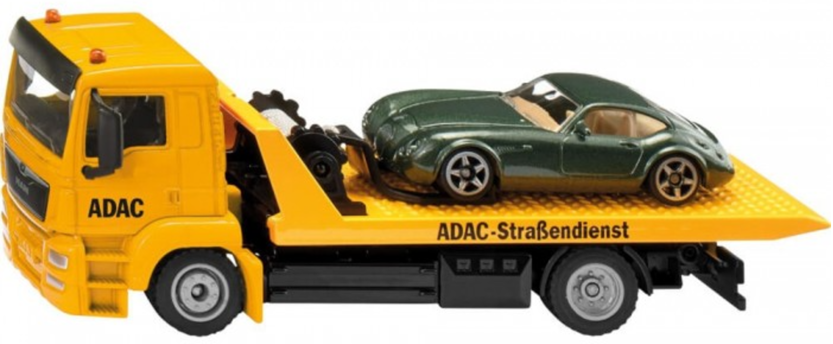 Acest model SIKU prezintă o autoplatforma ADAC în binecunoscuta vopsea galbenă.