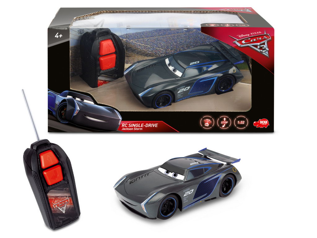 Invita-ti prietenii la joaca pentru a va intrece cu personajele voastre preferate din Cars. Acest model de masinuta cu telecomanda este inspirat din filmul Disney Cars 3. Telecomanda este conceputa pentru mainile micute ale copiilor iar butoanele mari ale telecomenzii permit o executare rapida a manevrelor. Lungimea masinutei este de 17 cm si poate fi controlata de la o distanta de 20 m cu ajutorul telecomenzii la o frecventa de 2,4 GHz. Masinuta cu telecomanda Dickie Toys Jackson Storm se poate misca inainte si inapoi, spre stanga si spre stanga.