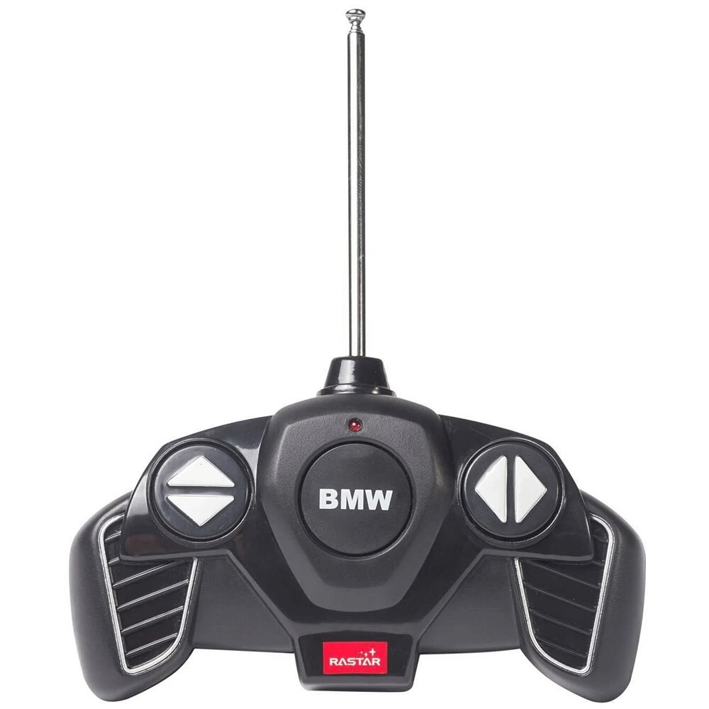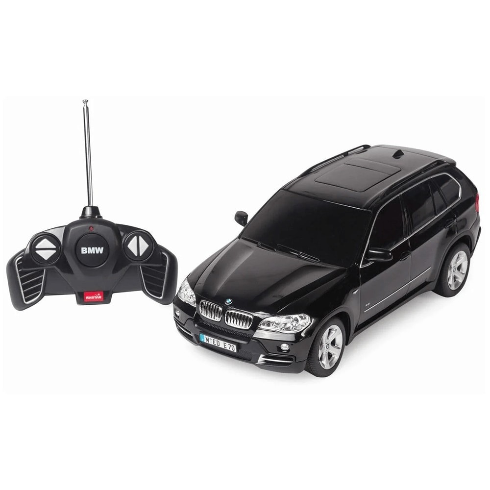 Copilul dumneavoastra se poate juca in voie cu masina cu telecomanda Bmw X5, scara 1 la 18, oferita de brandul international Rastar. Nicio cursa nu este imposibil de castigat cu acesta masinuta, replica oficiala cu licenta a modelului original, construita cu mare atentie la detalii. Masinuta are proportiile ideale pentru momente pline de distractie si amuzament, avand dimensiunile in centimetri dupa cum urmeaza : 26*12*7.4.Masinuta functioneaza pe frecventa de 2.4G.Alimentarea se face astfel : pentru masinuta sunt necesare 4 baterii tip AA , iar pentru telecomanda 2 tip AA.Masinuta se poate deplasa in toate directiile : inainte, inapoi, stanga sau dreapta. Masina cu telecomanda Bmw X5, scara 1 la 18, poate rula cu o viteza aproximativa de 10km/h, are tractiune 2WD, anvelope de cauciuc, posibilitate de reglaj a directiei direct pe sasiu si o raza de actiune a telecomenzii de circa 20 de metri.Acesta masinuta are si o functie suplimentara care face ca farurile si stopurile masinutei sa lumineze.