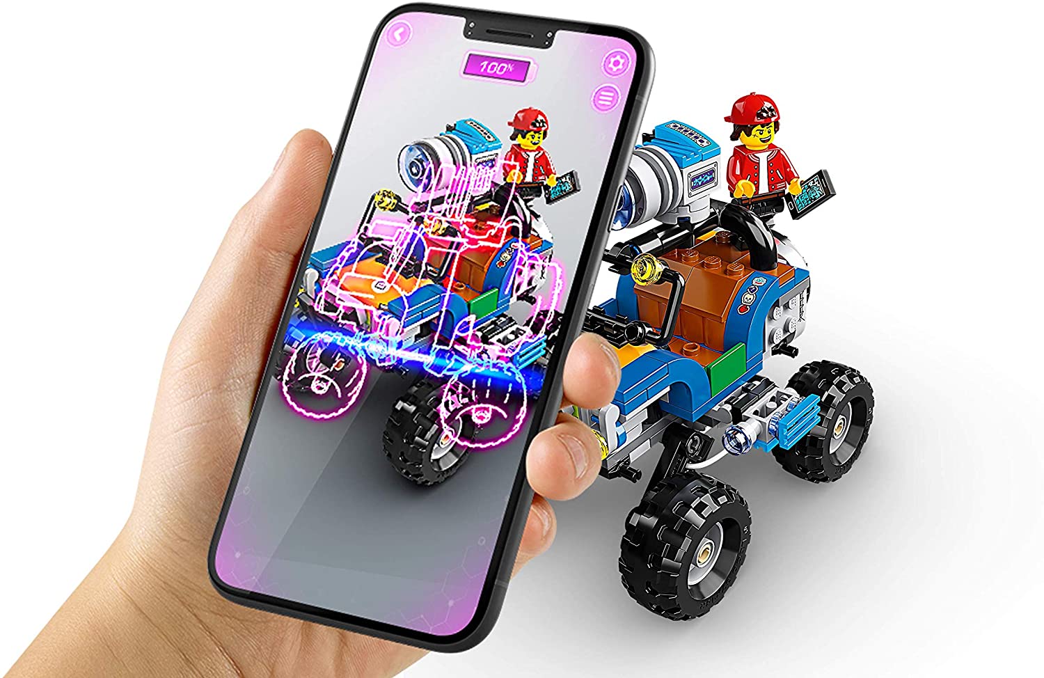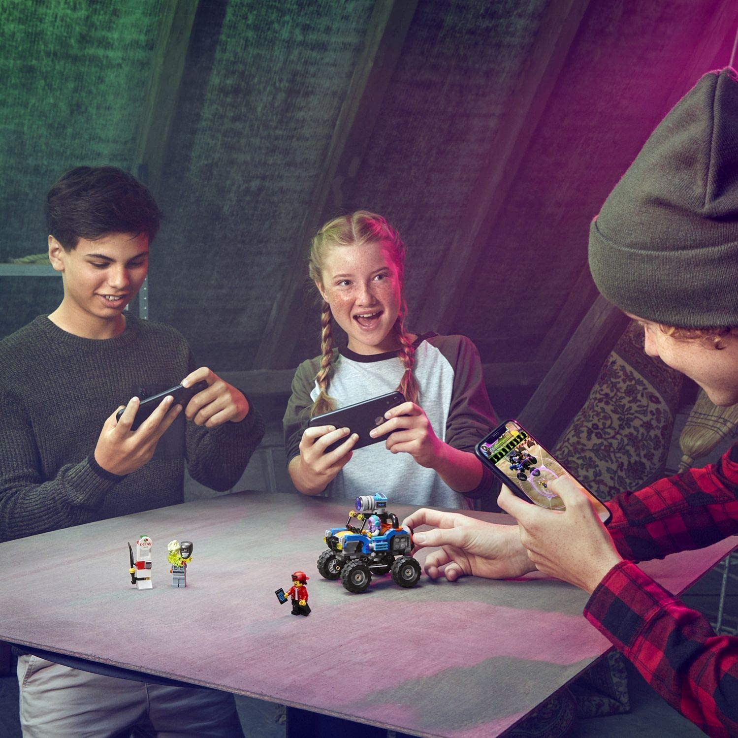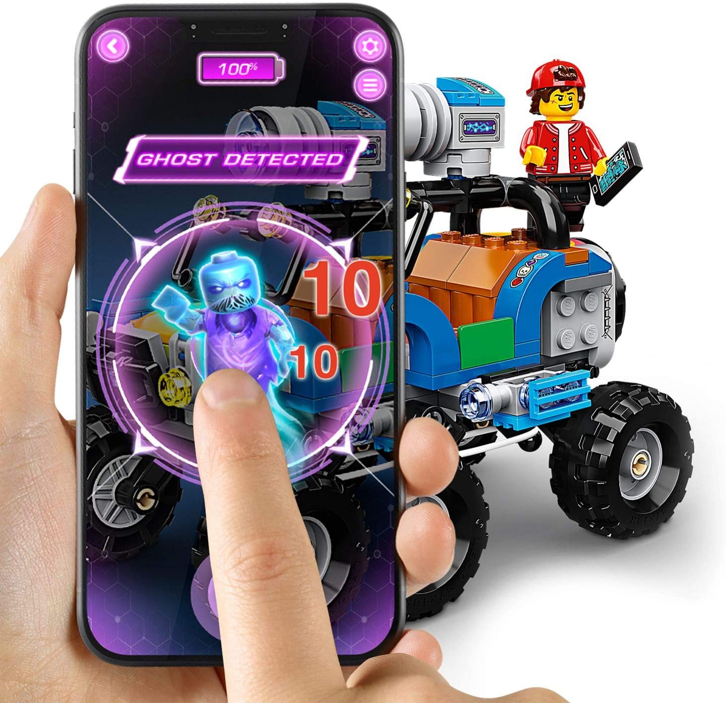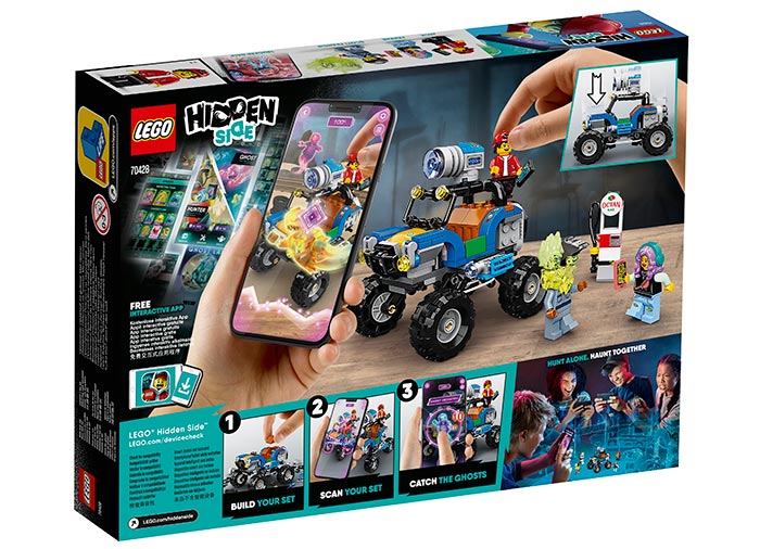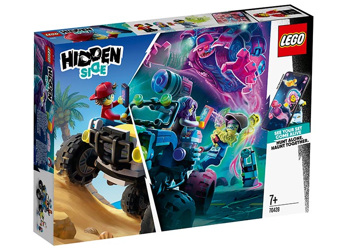 Avanta-te in Hidden Side cu masina lui Jack pentru plaja. Traieste o uimitoare experienta de realitate augmentata (AR), cu unul sau mai multi jucatori! Construieste masina cu minifigurinele Jack, Parker si Scott Francis cu 2 capete. Descarca apoi aplicatia gratuita Hidden Side AR si scaneaza modelul cu dispozitivul tau inteligent pentru a dezvalui o lume bantuita. Acum infrunta fantome, gaseste indicii, si invinge-l pe seful fantomelor, Trucker Dale, pentru a salva situatia!