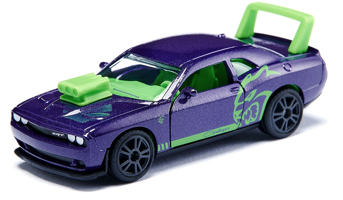 Doua usi mari si geamul transparent ofera o privire asupra interiorului masinii, care a fost reprodus fidel in fiecare detaliu. Farurile si farurile din spate sunt, de asemenea, imprimate fidele originalului, astfel incat modelul Dodge sa semene pana la cel mai mic detaliu cu fratele sau mai mare. Cu carligul de remorca integrat ca standard, Dodge poate fi combinat cu diverse remorci siku.
