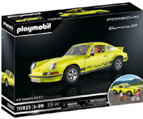 Cine nu a visat cand era copil sa detina un Porsche adevarat? Cu Porsche 911 Carrera RS 2.7, o adevarata masina sport nostalgica vine acum in gama PLAYMOBIL. Prima masina sport rutiera din lume cu spoilere fata si spate este acum prezent ca model PLAYMOBIL. Caroseria detaliata si proiectata cu dragoste, cu forma sa legendara, detaliile aerodinamice, precum spoilerul spate, mai cunoscut sub numele de „Coada de rata”, nu ii vor incanta doar pe fanii masinilor sport. Oglinda retrovizoare si inelele farurilor intr-un aspect cromat nobil, precum si inscriptiile curbate Carrera pe lateral confera masinii clasice o eleganta aparte. Acoperisul este detasabil pentru introducerea figurilor in interiorul masinii. Cand capota spate este deschisa, dezvaluie motorul boxer cu 6 cilindri. Fie ca este vorba de o calatorie sportiva sau de un drum de tara intortocheat: cu Porsche 911 Carrera RS 2.7 de la PLAYMOBIL, fiecare condus este o experienta. Un model de masina sport unic care nu trebuie sa lipseasca din nicio colectie! Setul include: un Porsche 911 Carrera RS 2.7 de la PLAYMOBIL intr-o culoare galbena sic, cu plafon detasabil si capota spate care poate fi deschisa, doua figurine PLAYMOBIL cu cos de picnic, patura si harta rutiera precum si alte extra pentru o calatorie de neuitat. Semnul de prezentare inclus enumera cele mai importante date ale masinii sport. Imi plac jucariile PLAYMOBILÂ pentru ca totul este atat de real. Imi place mult sa-mi creez propriul scenariu de joc cu figurine. Da, este foarte distractiv. " un mic fan PLAYMOBIL. Din 1974, sistemul de jucarii PLAYMOBIL, creat de Hans Beck, a devenit un clasic al locurilor de joaca pentru copii, cu numeroasele sale lumi creative - de la o nava cu pirati la un spital pentru copii. Circa 3,5 miliarde de figurine cu zambetul caracteristic au fost produse de atunci si incanta copiii din intreaga lume. Aproximativ 40 de scenarii de joc sunt distribuite in aproape 100 de tari de pe glob. Atat parintii, cat si educatorii apreciaza sistemul de jucarii PLAYMOBIL ca fiind un reprezentant al jocului creativ de inalta calitate. Joc creativ de rol cu PLAYMOBIL Principiul unic de joc stimuleaza imaginatia si creativitatea, promovand dezvoltarea copilului. PLAYMOBIL aduce o lume in miniatura, in care copiii pot interpreta diferite roluri, pot crea sau reproduce povesti, aventuri si situatii din viata reala. Cu multiple talente, aceste figuri vesele depasesc cu succes tot felul de provocari spre exemplu cavaleri sau pirati in scenarii istorice, ca muncitori in constructii, veterinari si politisti din lumea de azi sau ca agenti secreti in lumi virtuale. Oamenii creativi de la PLAYMOBIL vin in mod constant cu idei si completari noi pentru a le oferi celor mici de pretutindeni distractie de lunga durata.