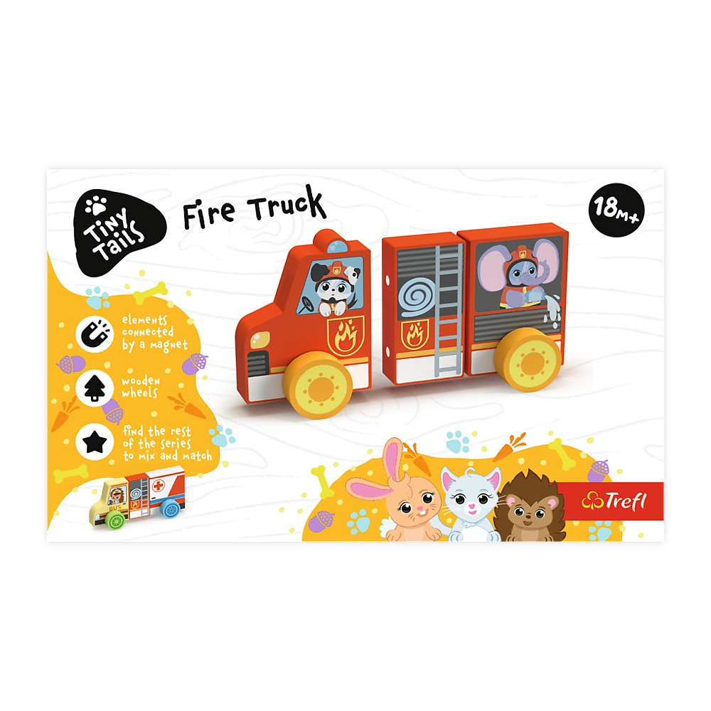 O masina de pompieri din lemn pentru copii. Este format din trei elemente, conectate magnetic si roti rotative. Gasiti alte vehicule din serie si amestecati si potriviti elemente pentru a descoperi si mai multe posibilitati distractive! Jucaria intareste reflexul de apucare si dezvolta coordonarea mana-ochi. Toate materialele folosite la crearea jucariei sunt certificate si vopsite cu vopsele non-toxice. Elementele din lemn sunt realizate din lemn certificat FSC. O jucarie perfecta pentru copiii de la 18 luni.