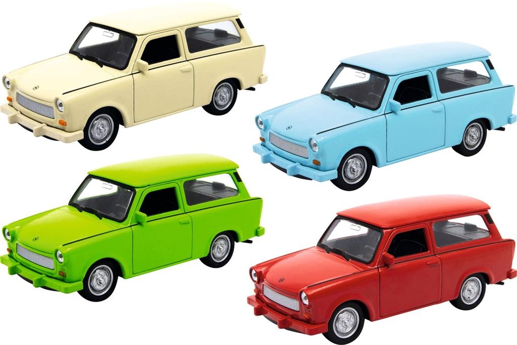 Faceți cunoștință cu mașinuța Goki Trabant 601, turnată sub presiune, la scara 1:38.