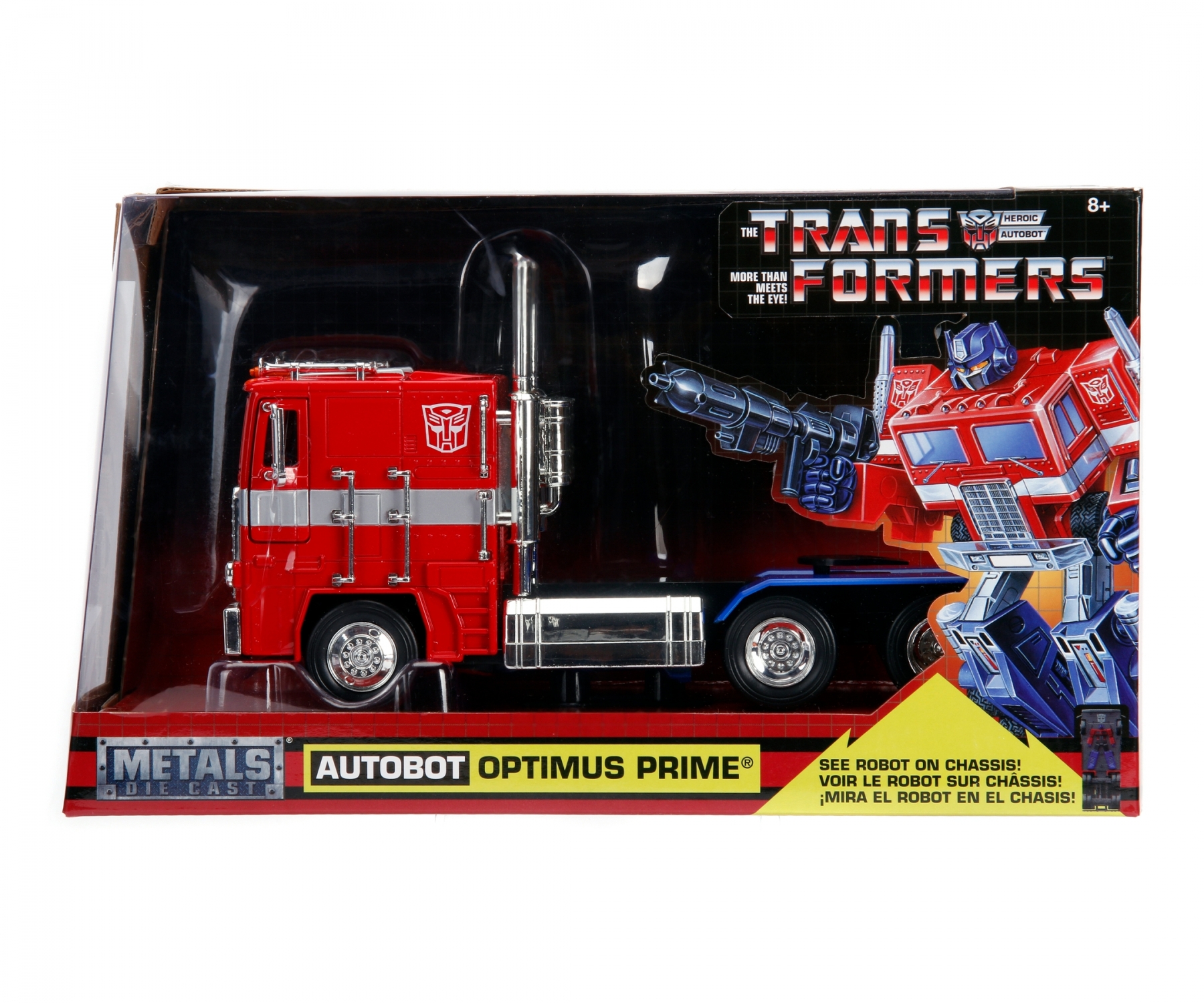 Roboti deghizati! Fanii Transformers vor adora acest vehicul de jucarie turnat sub presiune G1 Optimus Prime. Optimus Prime este un favorit al fanilor si are scara 1:24 sau aprox. 20 cm. Acest vehicul are usi ce se pot deschide, camion si capota, plus roti libere. Replica exacta T1 Optimus Prime. Optimus Prime si Autobots au venit pe Pamant pentru a proteja omenirea impotriva amenintarii Decepticonilor. Aceasta remorca Optimum Prime, turnata sub presiune 1: 24, este din colectia Studio Series si se bazeaza pe designul clasic Optimus Prime. Remorca este plina de detalii deosebite si este o replica a Optimum Prime in forma sa de camion.