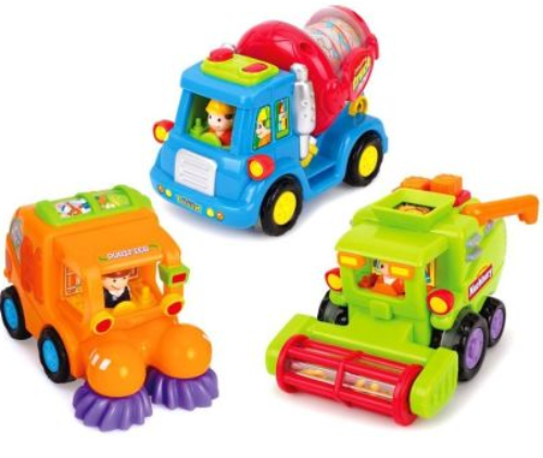 Masinile de jucarie sunt echipate cu o singura actiune, ceea ce face ca fiecare dintre vehicule sa calatoreasca inainte izolate. Fiecare masina din cele 3 are cate o functie specifica. Peacoperisul vehiculului sunt doua butoane rosii pe care le puteti impinge singur. Masinile pentru nu necesita baterii. Joaca cu masinile face multa distractie copilul cel mai solicitant. Jucariilede dimensiuni mici sunt deosebit de bune pentru o plimbare.