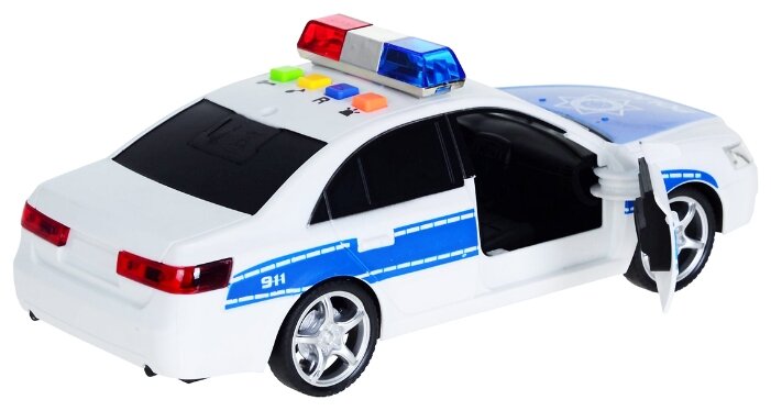 Operatiunile de urgenta si siguranta a cetatenilor pot fi probabil cele mai interesante lucruri pe care un copil il poate experimenta prin joaca. Masinuta albastra de politie cu sirena, sunet si lumini are urmatoarele caracteristici - Girofarul emite sunete si lumini, la fel ca o masina adevarata. Pentru sunete specifice ale unei masini de politie pot fi actionate cele 4 butoane plasate deasupra, pe plafon. - Rotile sunt de cauciuc. - Portierele se pot deschide pentru a oferi o experianta de joc cat mai reala.- Este fabricata din material plastic de inalta calitate, cum ar fi ABS. - Masina este construita la o scara de 1 la 16. - Masinuta este dotata cu motor cu frictiune, astfel, ea va fi impinsa putin si datorita frictiunii ea se va deplasa pe o mare distanta pe directia inainte.