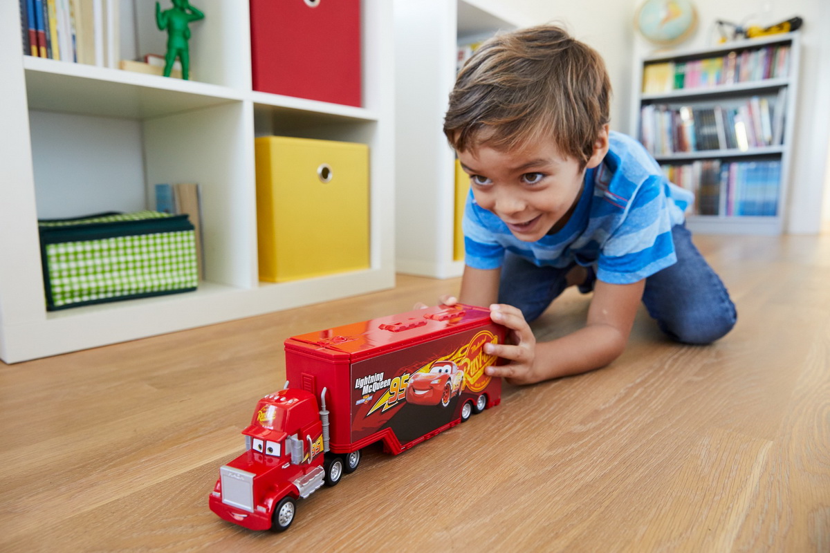 Mega Transportatorul Mack are o camera cu un ecran TV mare si premii McQueen, o spalatorie auto si un lift de rulare. Mega transportoarele Cars Disney Pixar permit fanilor sa recreeze aventurile din filmele indragite si sa transporte personajele preferate spre noi curse! Fiecare transportator se transforma si intr-o zona de verificare si relaxare, la fel ca cele din film. Fiecare camion are o tema de personaj, include multe puncte de actiune cu detalii din film si un joc 2 in 1, inchideti setul pentru a-l transforma intr-un vehicul minunat! Pregatiti-va pentru curse si apoi luati-va masinile si porniti pentru mai multe aventuri! Camioanele Disney Pixar Cars ofera multe moduri de a juca! Se deschide si devine un set de jocuri cu multe puncte de actiune.