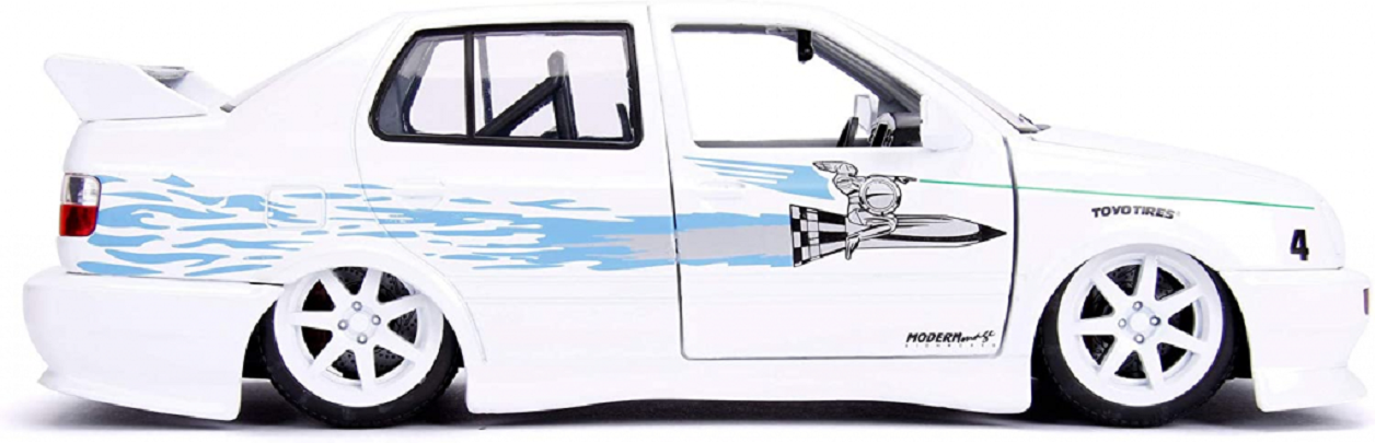 Mașina Volkswagen Jetta este o replică detaliată a vehiculului emblematic al lui Jesse din primul film Fast & Furious.