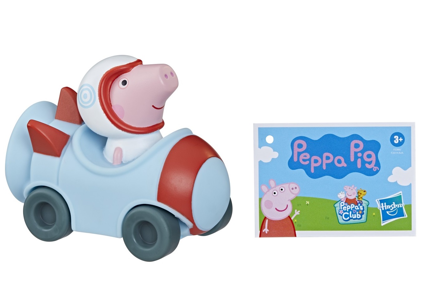 Mașinuță Buggy cu personajul Purcelușul Astronaut din Peppa Pig. Vehiculul este prevăzut cu roți reale care rulează, putând fi împins de cei mici.