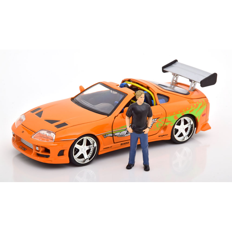 Set masinuță + figurină, Toyota Supra 1995 și figurină Brian O'Conner, replică la scara 1:24 după mașina din populara serie Fast & Furious, apărută în anul 2001, avându-i ca protagoniști pe Paul Walker și Vin Diesel.