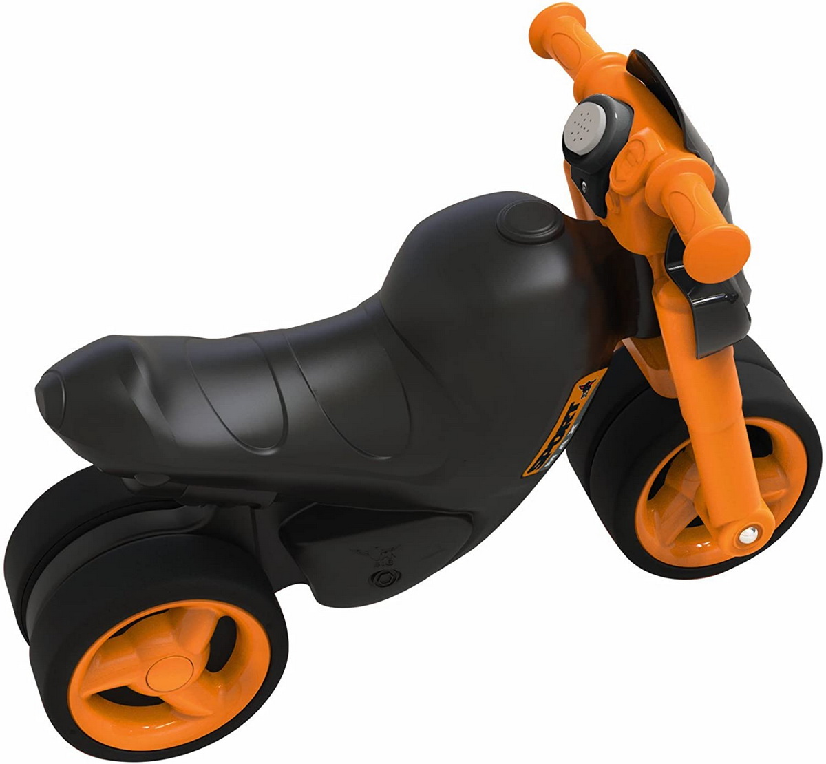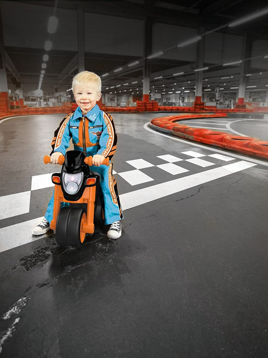 Motocicleta pentru copii Sport Bike este un babytaxiu fantastic pentru copii, cu un aspect in cel mai modern design. Straluceste intr-un aspect de culoare splendida de negru-portocaliu, de care fiecare mic concurent se va indragosti. Un accesoriu nemaipomenit al motocicletei este modulul electronic, care functioneaza cu baterie CR2032 tip buton. Bateria este doar pentru testare, este necesara schimbarea acestuia. Claxonul electronic emite sunete de pornire de motocicleta, de claxon si de accelerare. Motocicleta mica este foarte realistica. Rezistenta la greutate este 25 de kg si este ideala pentru interior si exterior. Scaunul BIG are format ergonomic si este protejat. Deoarece copii stau pe motocicleta cu picioarele indepartate, se dezvolta corect postura lor. Copii vor adora sa se joace pe aceasta motocicleta.