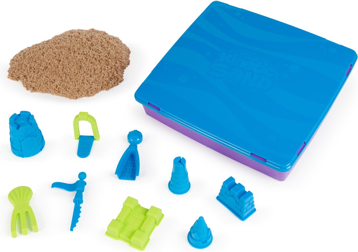 Utilizați cele 9 forme de castel de pe cutia de nisip Kinetic Sand cu 2 niveluri pentru a construi castele de nisip, turnuri, ziduri, poduri și multe altele. Pregătește-te să-ți proiectezi castelul. Uneltele tale servesc și ca decorațiuni pentru castelul tău. Cele 2 unelte multifuncționale Kinetic Sand sunt perfecte pentru tăierea, săparea, greblarea și lopata nisipului dvs. maleabil. Curățarea este ușoară. Kinetic Sand se lipeste de el insusi si este usor de curatat.