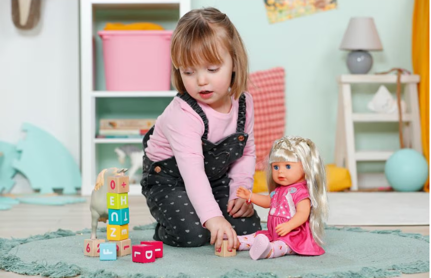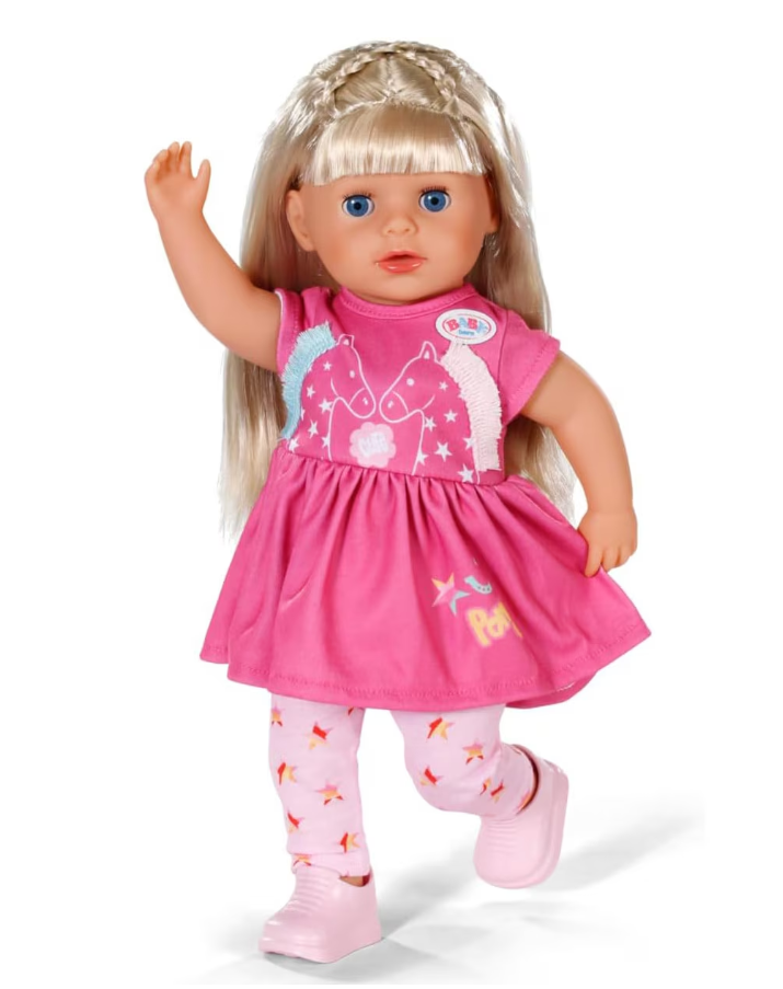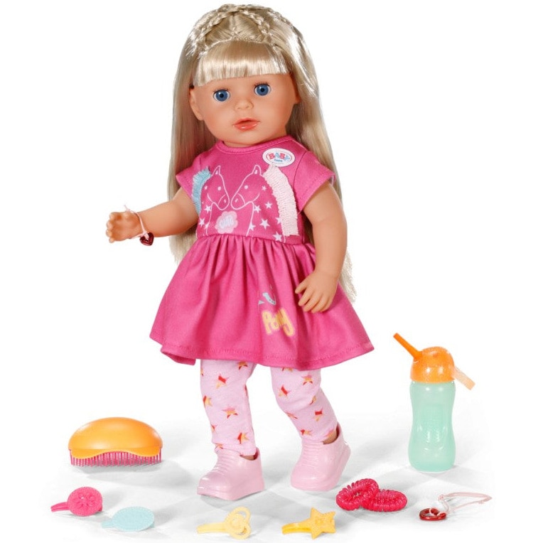Cu o înălțime de 36 cm, mica Sarah este completarea perfectă pentru familia BABY Born. Toate cele 7 funcții de joc ale ei funcționează fără baterii. Părul ei lung și blond din nailon de înaltă calitate este deosebit de grozav și poate fi coafat, pieptănat și coafat cu 11 accesorii diferite. Dar nu doar părul ei poate fi îngrijit cu dragoste: Sarah poate să bea din sticla ei, să plângă lacrimi adevărate și să închidă ochii când stă întinsă. De asemenea, este super flexibilă, își poate îndoi genunchii și poate sta singură în picioare. Acest lucru o face potrivită copiilor cu vârsta de 3 ani și peste, dar și copiilor mai mari.