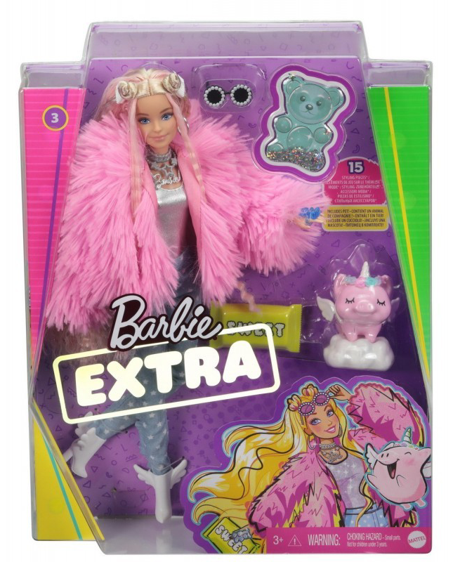 Papusile Barbie Extra etaleaza tinute indraznete, culori vii si iau atitudine! Fiecare papusa Barbie®are propriul stil jucaus si exagerat. Animalele lor de companie sunt diferite, adorabile si au si ele o personalitate puternica! Barbie Extra permite copiilor sa exploreze exprimarea de sine prin stil si ofera o experienta de moda si stilizare captivanta, cu papusi care prezinta articulatii. Barbie Extra reprezinta distractie la moda cu sclipici, ursuleti gumati, emoji si par distinctiv, aducand un vibe EXTRA oriunde merg. Fiecare se vinde separat, in limita stocului disponibil. Papusile nu isi pot mentine pozitia fara sprijin. Acest set contine o papusa blonda cu o jacheta fluffy roz si un animalut procusor unicorn roz.