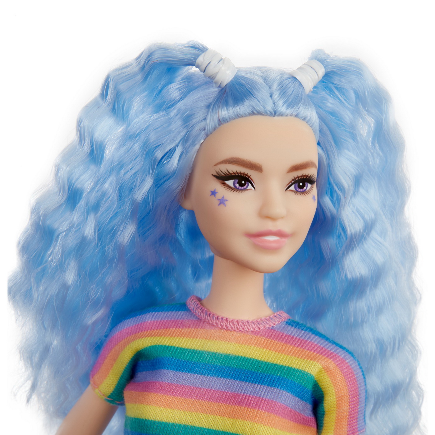 Fashionistas este una dintre cele mai indragite colectii Barbie, oferind o gama larga de papusi cu diferite stiluri si accesorii, introducand conceptul de diversitate si acceptare in randul fetelor. Aceasta colectie include papusi cu diferite tipuri de siluete, tonuri de piele, culori de ochi si par, astfel fetele nu se vor plictisi niciodata si isi vor gasi papusa asemanatoare stilului lor. Papusile au stilul lor propriu, inspirat de ultimele tendinte din moda si vin cu o tinuta completa, incaltaminte si accesorii fabuloase. Hainutele sunt confectionate astfel incat se pot potrivi oricarei papusi din gama Fashionistas. Descopera fiecare papusa Barbie din colectia Barbie Fashionistas si exploreaza lumea minunata a modei! Papusa Barbie are parul mov, este imbracata cu un tricou in dungi multicolor si o fusta neagra, care este accesorizata cu o curea argintie. In picioare are o pereche de bocanci negri.