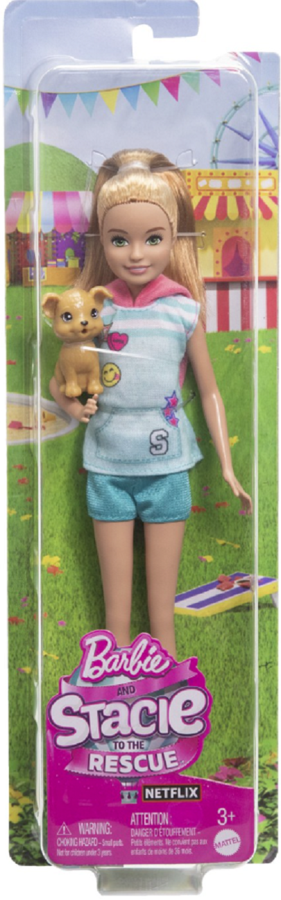 În pachet vei gasi o papusa Stacie si un catelus de companie.