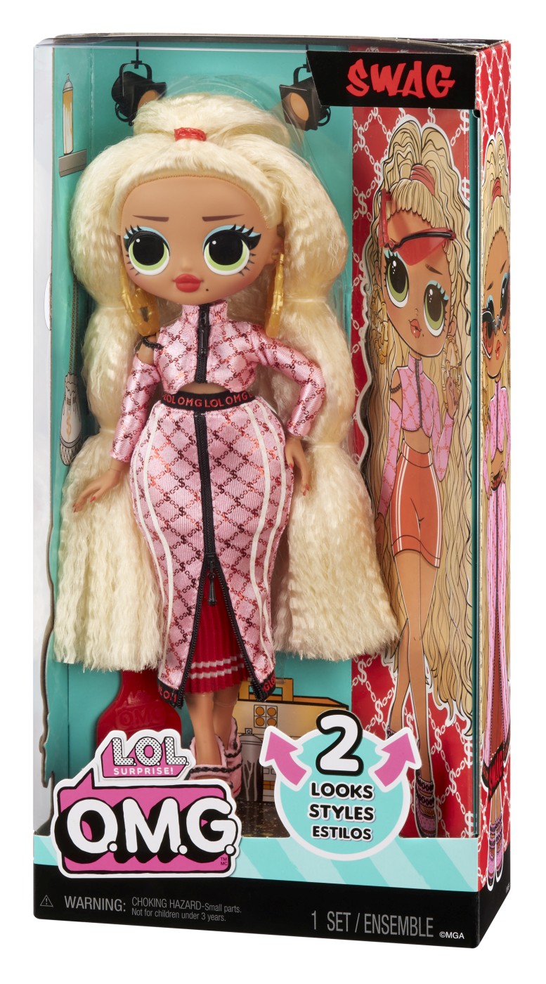 L.O.L. Surprise O.M.G. papusile de moda revin in scena pline de farmec si cu coafuri superbe: salut-o pe Swag, sora mai mare a personajului superstar, M.C. Swag! Swag captiveaza multimea cu stilul ei sic si personalitatea cool care completeaza perfect stilul prietenelor ei; ii place sa mearga cu valul si sa fie relaxata! Pregatita sa iasa pe podium!