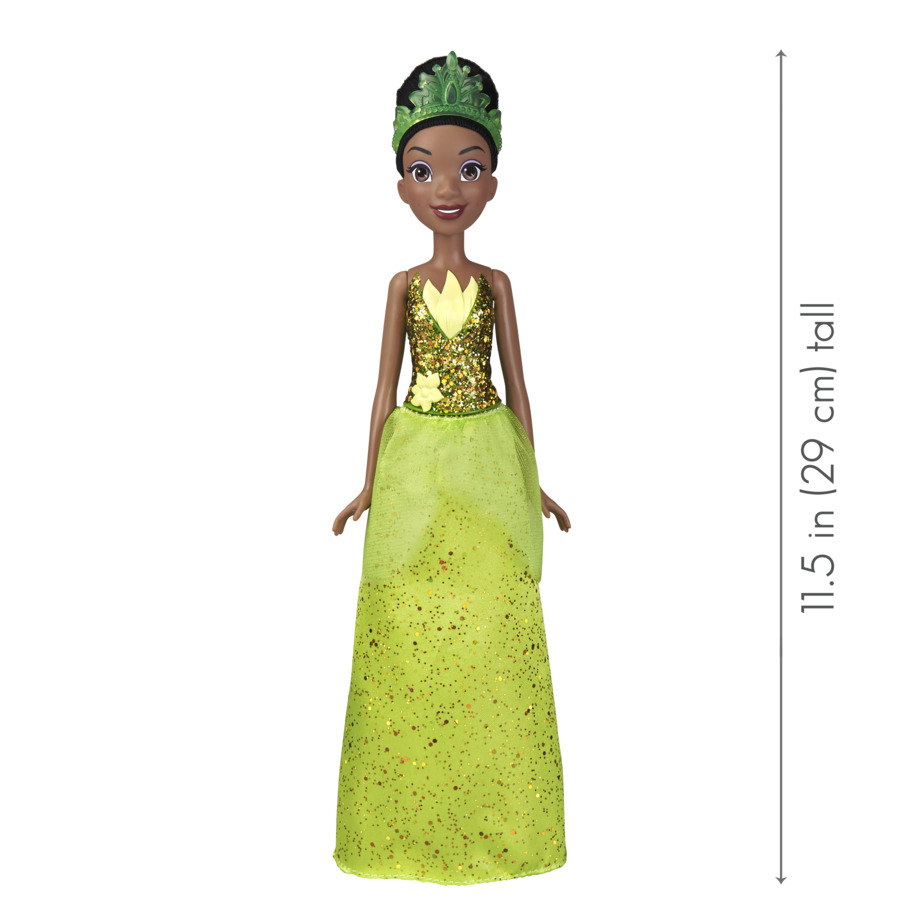 Nici o fetita nu ar refuza sa participe la Balul Regal ca o Printesa. Printesa Tiana vine imbracata in rochia ei de bal, impreuna cu tiara potrivita si accesorii pentru par. Aranjeaz-o si transform-o in cea mai frumoasa Printesa din tinut! Fiecare printesa Disney este stralucitoare intr-o tinuta cu sclipici de sus pana jos! Micuta ta visatoare va adora sa joace momentele magice din filmele Disney cu printese, dar si sa isi creeze propria poveste magica. Papusa are o inaltime de 28cm.