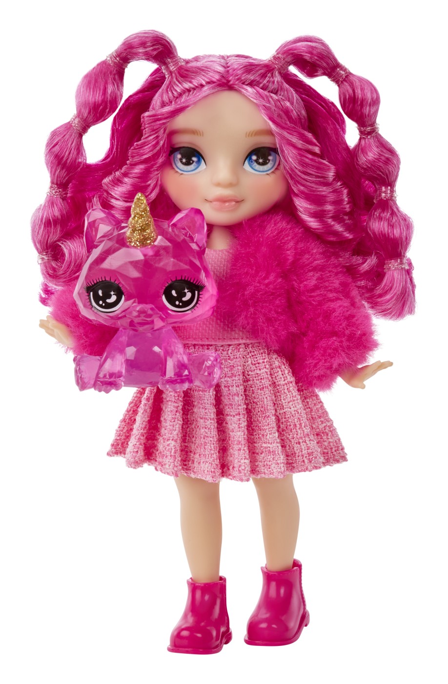 Sunt incluse: o papusa, tinuta detasabila si pantofi, geanta si animal de companie magic cu corn.