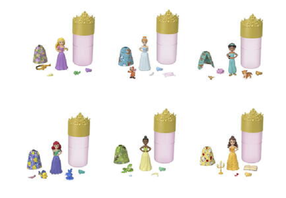 Printesele Disney Mystery includ Ariel, Cenusareasa, Tiana, Belle, Jasmine si Rapunzel.