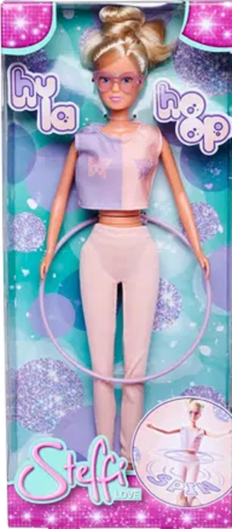 Cu cercul ei de gimnastică preferat, păpușa Steffi este extrem de elastică și poate face multe acrobații.